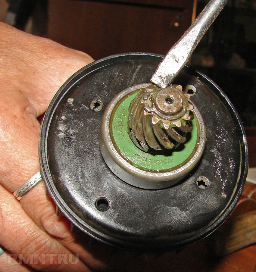 Чтобы снять шестерню, надо воспользоваться прессом или съемником. Но использование съемника затруднительно, поскольку требует применения специальных тонких губок.