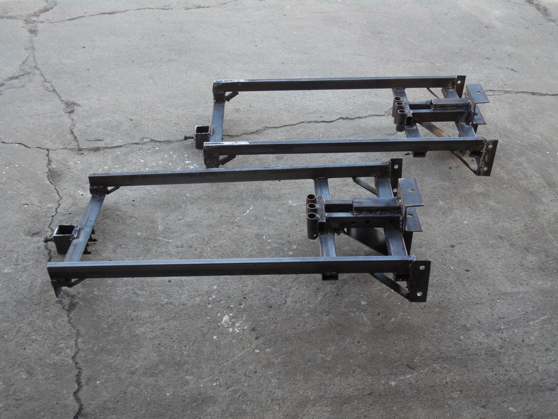 - Ходовая часть к раме присоединяется при помощи стальных пластин, которые можно прикрутить непосредственно к ступицам.