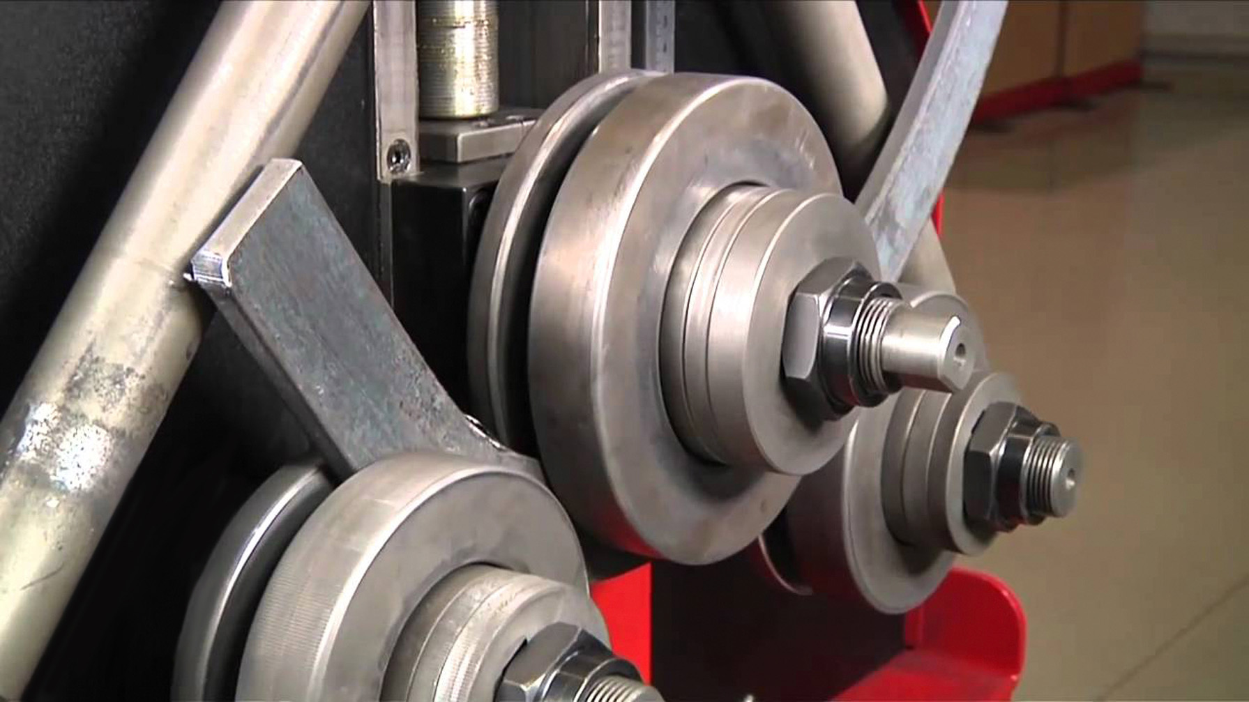 Не обойтись без такого станка и в том случае, если вам надо согнуть трубы с большим сечением профиля. Основными рабочими органами такого станка, отличающегося широкой универсальностью, являются три валка, два из которых фиксируются неподвижно, а за счет изменения положения третьего регулируют радиус изгиба изделия. В качестве привода такого устройства используется цепная передача и рукоятка, которую вращает оператор.