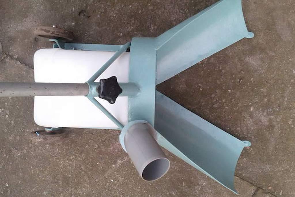 Для отвода снега из ковша, в его верхней части прорезается отверстие. В качестве отводящего желоба можно использовать канализационную пластиковую трубу с диаметром 150 мм или другого. Главное, чтобы диаметр желоба превышал ширину откидывающей лопатки шнека.