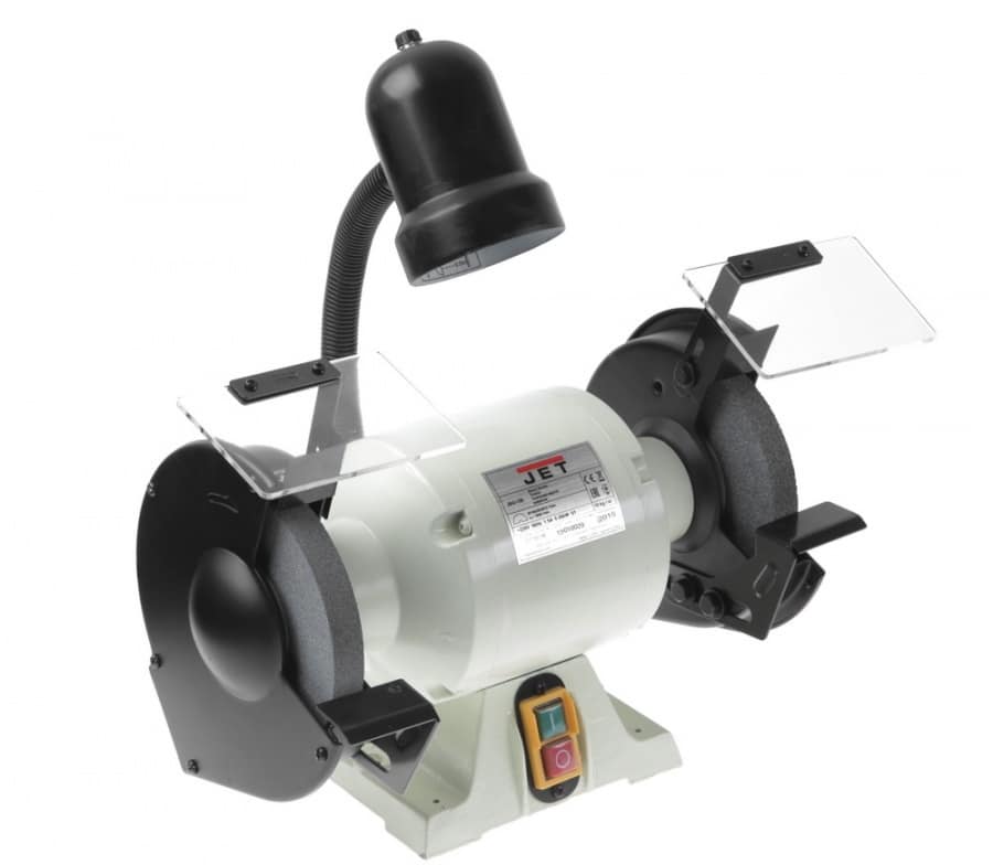 Данная модель оснащена подсветкой, которая располагается возле диска. Она запускается при включении устройства. Правда в подсветке стоит не светодиодная лампочка, а лампа накаливания. Приятным моментом является наличие второго заточного диска, который идет в комплекте. Его толщина составляет 3,2 мм. Весит заточной станок 5,8 кг. В сети есть подробный видеообзор этого устройства.