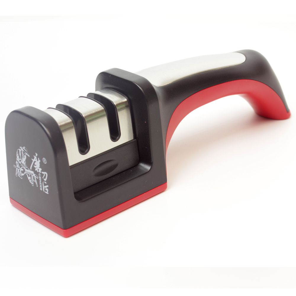 Третья позиция достаётся ручной точилке для ножей с большим основанием, имеющим прорезиненную вставку для предотвращения соскальзывания. Благодаря эргономичному корпусу, отлично ложится в ладонь, не выскальзывает в процессе заточки. На корпусе имеется четыре паза: два для обычной и два для японской асимметричной заточки. Модель способна обрабатывать ножи любой длины. Пользователи также отмечают, что металлическое полотно может иметь любую толщину. Для идеальной заточки необходимо провести режущей кромкой всего 6-7 раз.