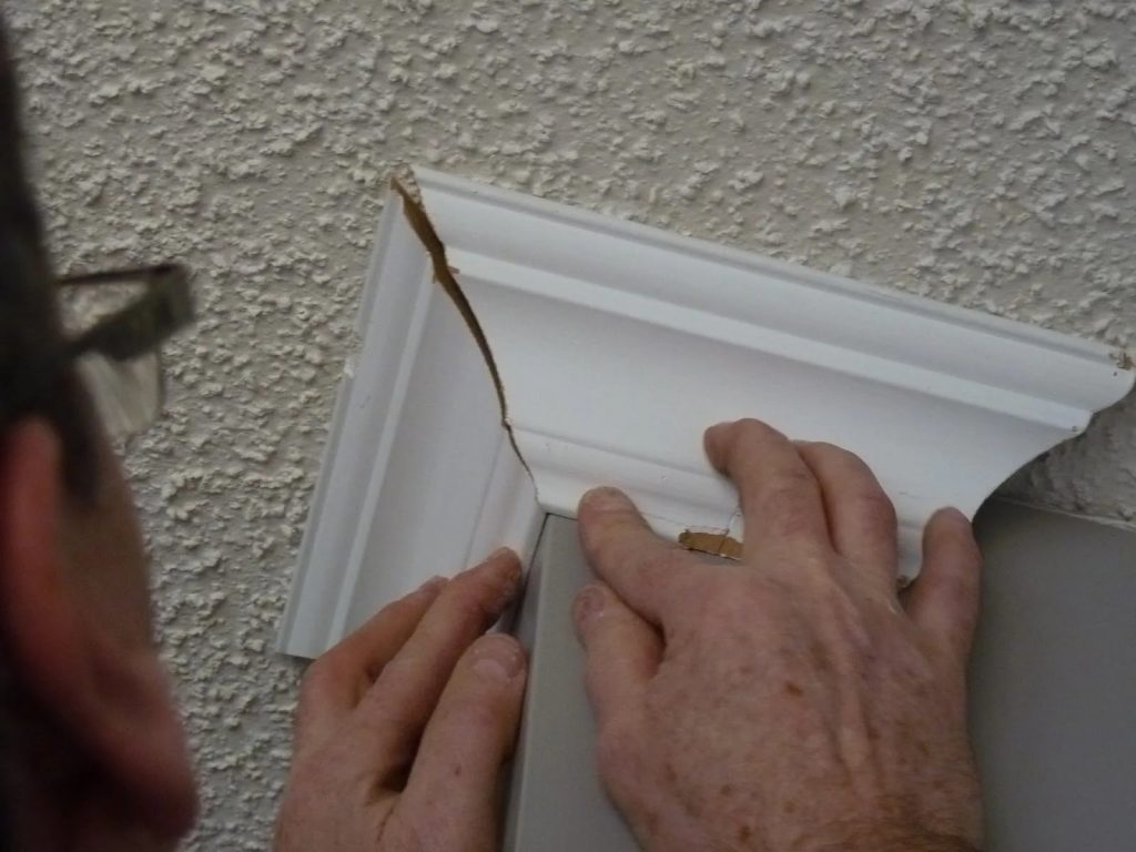 - Первая часть изделия прикладывается к углу между стеной и потолком, прижимается до начала твердения вещества.