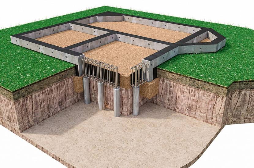 - при слабых грунтах, где другие основания выполнить невозможно — торфяники, болота, сильнопучинистые влажные почвы;