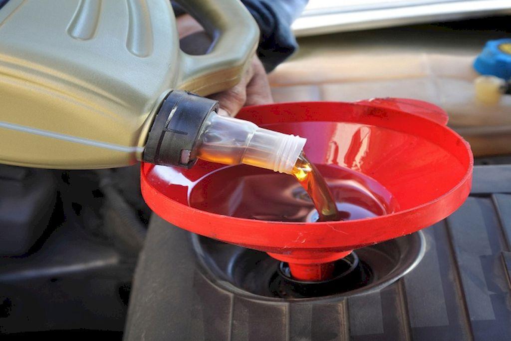 Свежую масло наливают в картер через шею воронкой. Уровень жидкости проверяется щупкою. Обычно 0,5 л материала достаточно для заполнения емкости с маслом.
