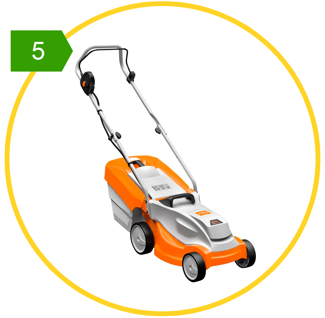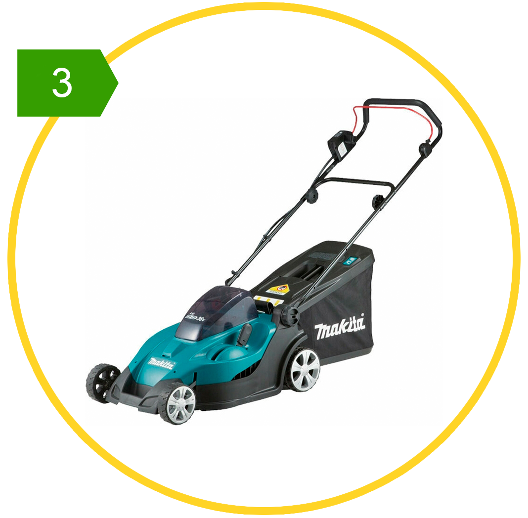 Рейтинг аккумуляторных газонокосилок возглавляет самоходная косилка с сетевым питанием. Оснащена 1,8-киловаттным моторов, 46-сантиметровым ножом. Есть и большой мягкий травосборник на 60 литров, при этом ее вес составляет всего 26 кг. Скорость этой модели на ровной поверхности может составлять 3,6 км/ч. Есть семиступенчатая регулировка высоты скашивания, от 30 до 75 мм. Всего поддерживается два режима работы: со сбором травы и с выбросом назад.