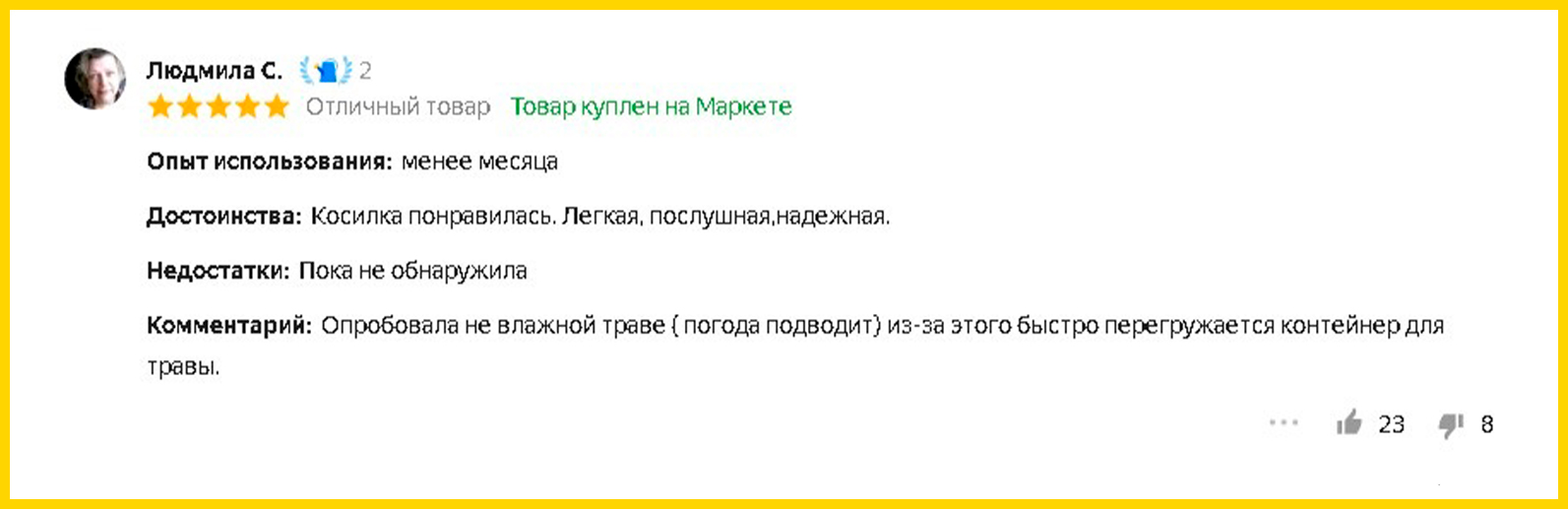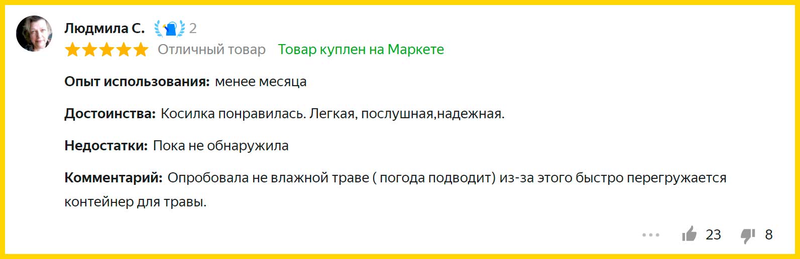 При покупке нужно обратить внимание, чтобы у машинки был боковой выброс травы. Это удобно, когда косилка не оснащена сборником скошенных отходов