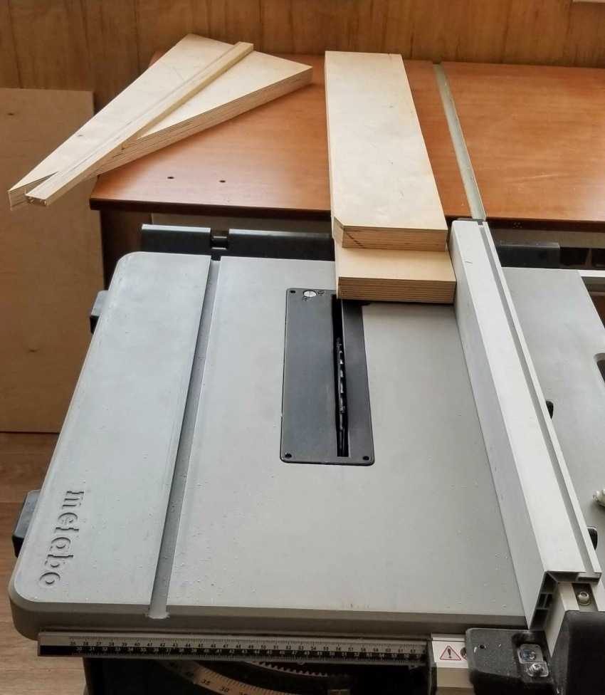 Полозки можно изготовить из древесины твердых пород, например из клена. У меня под рукой оказался дуб и я напилил рейки из него. Вообще, если в пазы вставлен алюминиевый п-образный профиль, то износ полозков будет гораздо меньше. Я обошелся без профиля в силу того, что планирую купить станок Проксон и ресурса этой самоделки при условии нечастого ее использования мне будет достаточно. Те же, кто делает самоделку «всерьез и надолго» имейте этот аспект ввиду.
