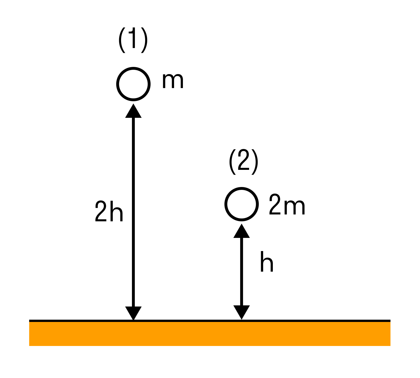Два шара разной массы подняты на разную высоту относительно поверхности стола (см. рисунок). Сравните значения потенциальной энергии шаров E1 и E2. Считать, что потенциальная энергия отсчитывается от уровня крышки стола.