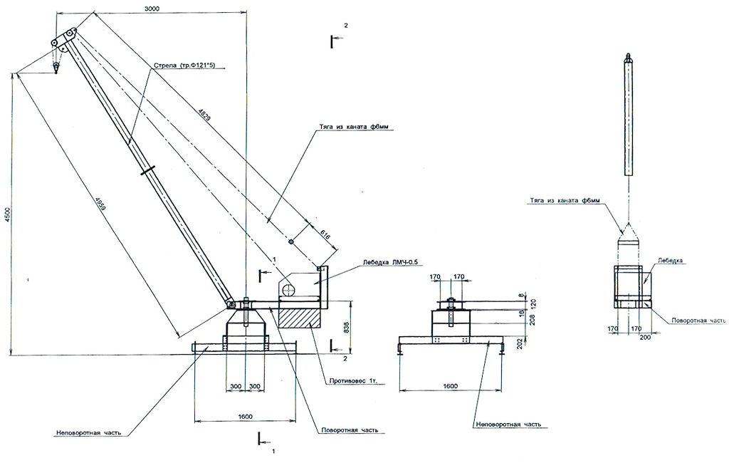 Данный тип кранов выпускается с грузоподъемностью 500, 750, 1000 килограмм, но возможно изготовление кранов с большей грузоподъемностью.