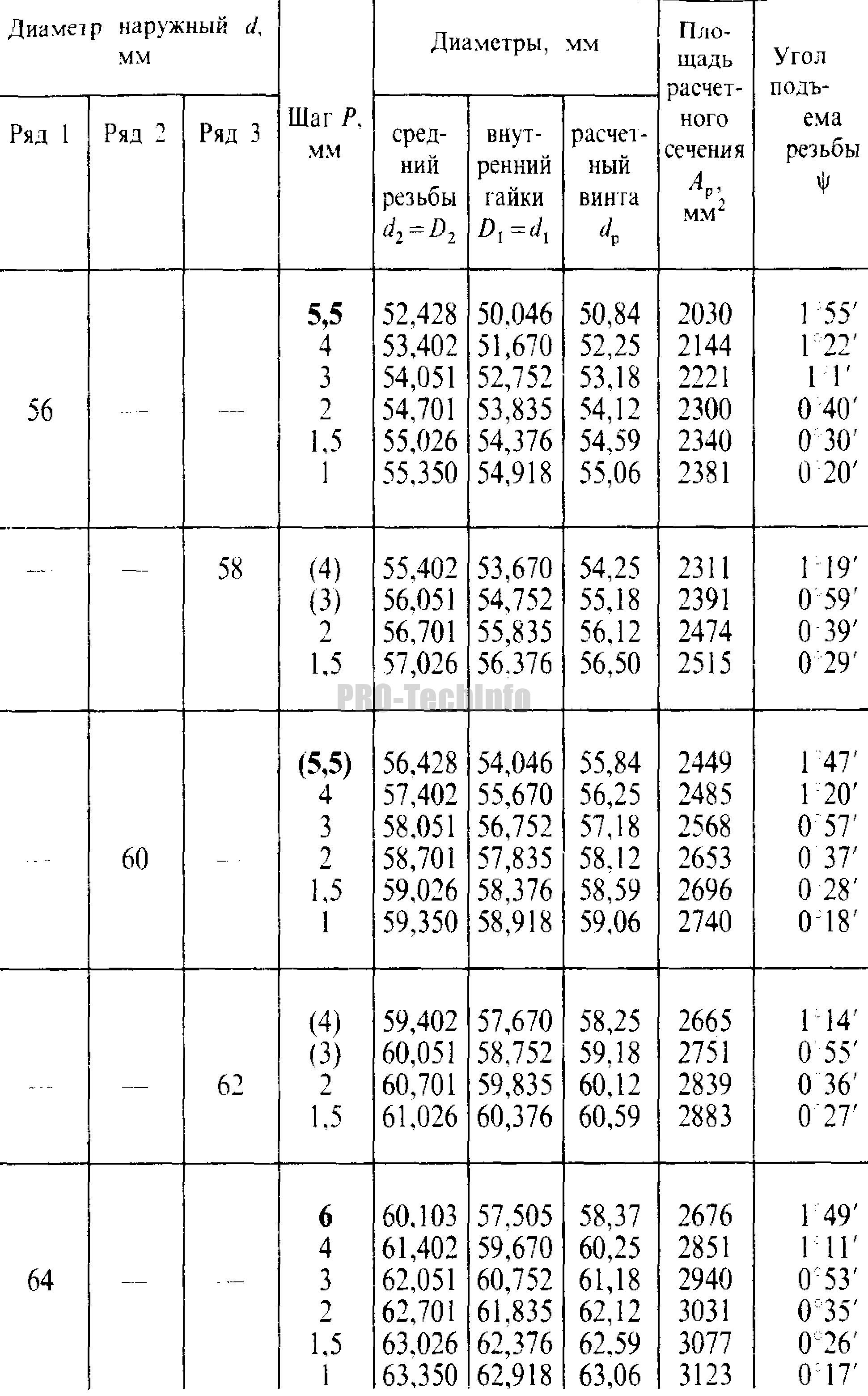 На рисунках приведены размеры резьб диаметрами 5… 64 мм, используемые при расчетах на прочность.