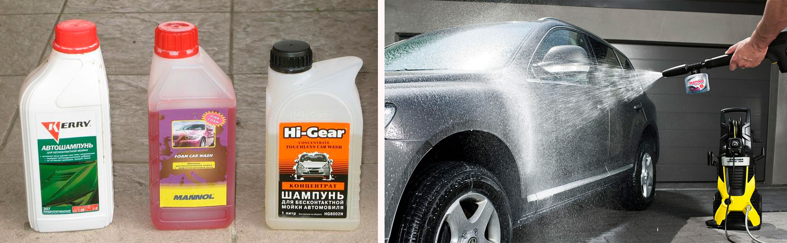 Специальные автошампуни характеризуются обильным образованием пены и текучестью, благодаря которой жидкость проникает в труднодоступные места. Справится с грязью помогает сила напора подаваемой для мойки струи мыльной воды. Задача человека не выпустить из своих рук шланг и правильно выбрать угол подачи потока на ЛКП.