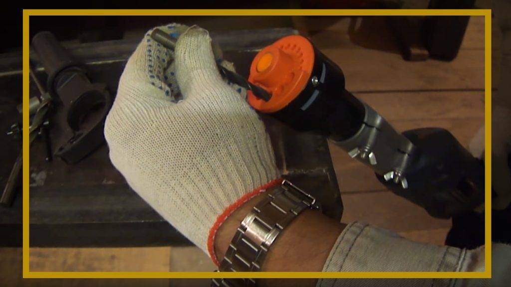 В процессе применения насадки «Ножницы» на дрели вращение патрона на инструменте преобразуется в возвратно-поступательные движения. В результате этого специальная матрица выбивает в металле полоску и отделяет материал. Толщина этой линии составляет 3,1 мм. При подобном способе раскроя листов срез получается качественным и ровным. Насадка «Ножницы» позволяет полностью отказаться от доработки краев на металле или свести ее к минимуму.
