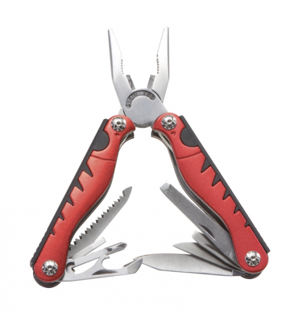 Полноразмерное многофункциональное устройство от известного американского производителя стало настолько популярным, что подделывается китайцами. Оригинальный вариант при приемлемой стоимости включает в себя пассатижи с узкогубцами, нож, напильник, 4 различных отвертки, открывалку.