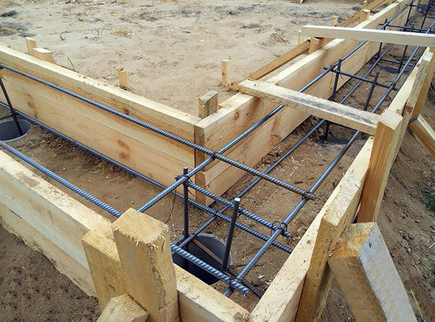 Армирование ленточной бетонной ленты выполняют двумя рядами металлических прутьев, уложенных вдоль конструкции. Для получения достаточной прочности верхний и нижний ряды арматуры скрепляют между собой вертикальными и горизонтальными перемычками.