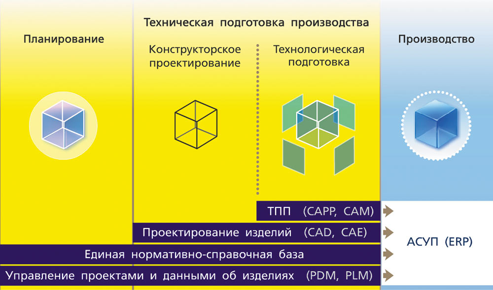 Современную конструкторскую, производственную деятельность, поддержку эксплуатации, модернизации и утилизации изделий невозможно представить без использования различного рода автоматизированных систем: CAD (САПР), CAM, PDM, систем технологической подготовки производства, PLMсистем. Общую картину иллюстрирует рис. 1.