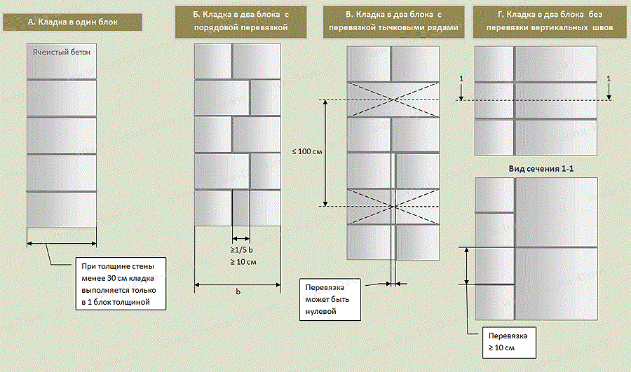 | Со стенами | Перед началом монтажа в стены, стыкующиеся с перегородкой, вбивают металлические штыри или вставляют в заранее просверленные отверстия (5 см) арматурные прутки. В блоках выпиливают отверстия для насаживания на эти штыри либо располагают арматуру так, чтобы блочные элементы укладывались на выступающие концы. | Каждые 2–3 ряда. |