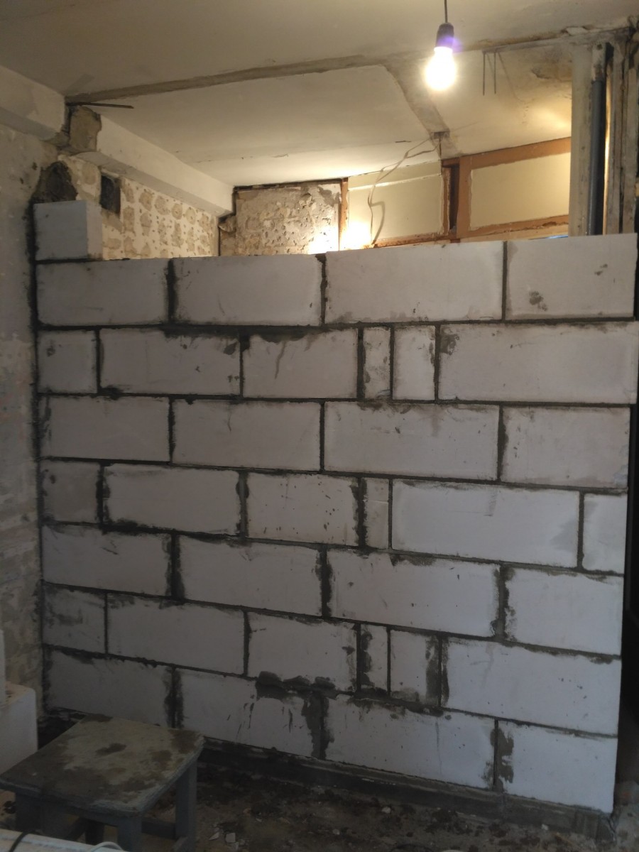 Дальнейший монтаж перегородок своими руками из пеноблоков сложности не представляет: