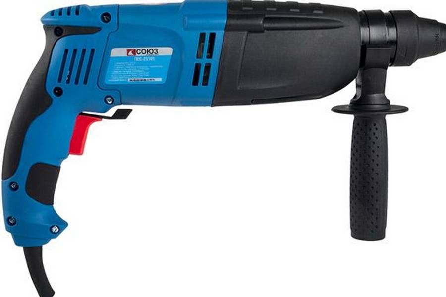 Еще одна недорогая модель, которая обойдется не дороже 4 тыс. рублей. ПЕС-25101 может бурить, сверлить и долбить отверстия стандартными насадками, так как патрон устройства выполнен под стандарт SDS Plus.