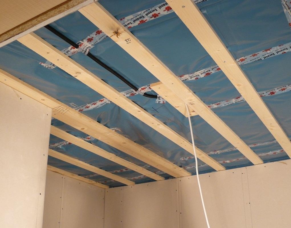 Отличным решением для возведения обрешетки потолка считаются деревянные рейки, главным преимуществом которых является небольшая цена