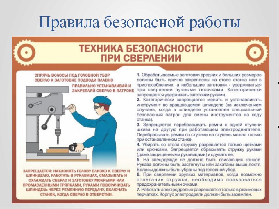 Каждый мастер обязан иметь допуск и пройти аттестацию до официального приема на работу. Инструкция считается типовой документацией, должна быть составлена по правилам, заверена подписью руководителя организации и круглой печатью. Ниже описаны основные правила при работе с металлом, деревом с использованием дрели, сварочного аппарата или любого станка: