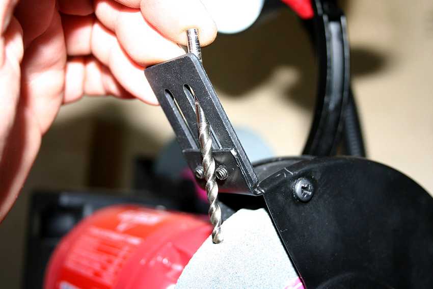 Для установки угла заточки, в комплект входит подвижная направляющая для сверла. Оператору остается контролировать лишь силу прижима к абразиву.