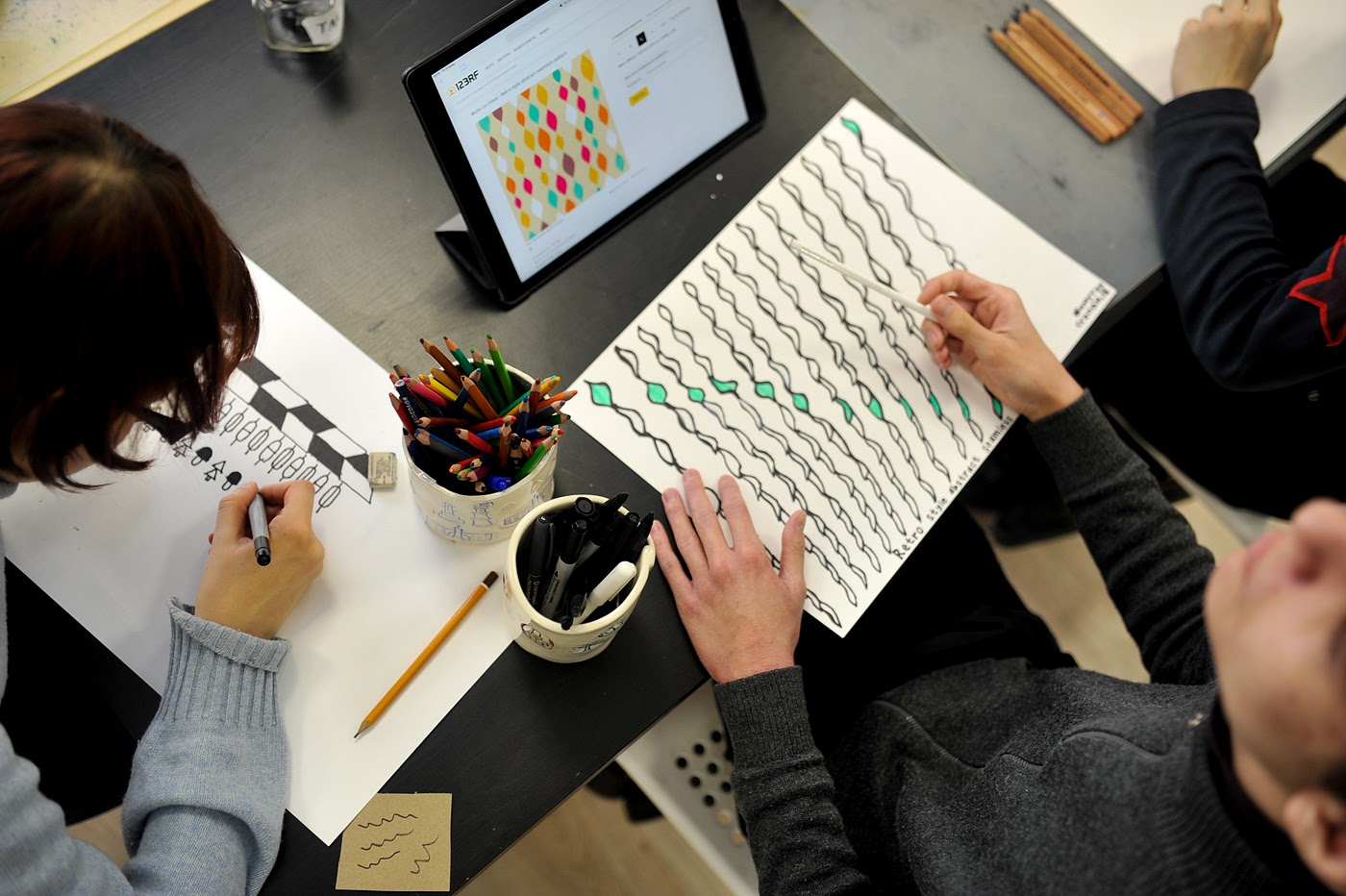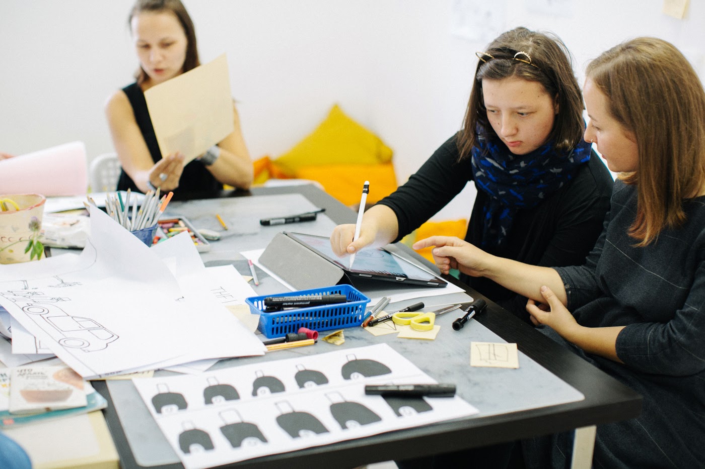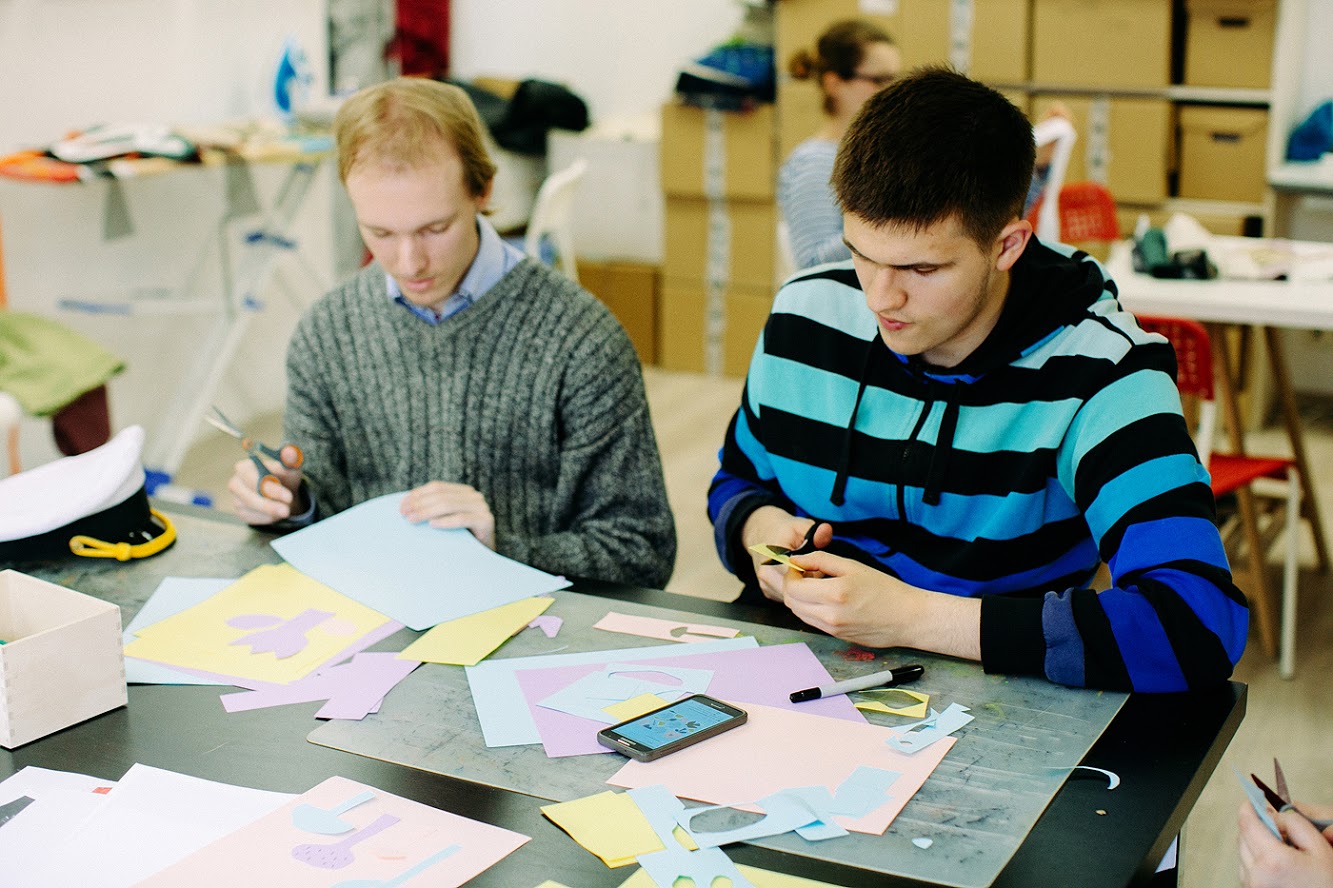 Здесь работают особые художники, которые рисуют по заданию или самостоятельно. Дизайнер переносит работы на тиражную продукцию. Так появляются бутылки, алюминиевые кружки, раскраски, наклейки и другие вещи. У графиков можно заказать совместный дизайн фирменного стиля компании и «Простых вещей», если вы оформляете заказ на корпоративные подарки.