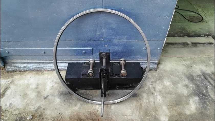 Чтобы на станке с ручным приводом согнуть трубу, необходимо сделать несколько проходов. Для этого подвижный вал перемещают так, чтобы создать небольшой радиус изгиба. Трубу прокатывают несколько раз, пока изгиб не перестанет увеличиваться.