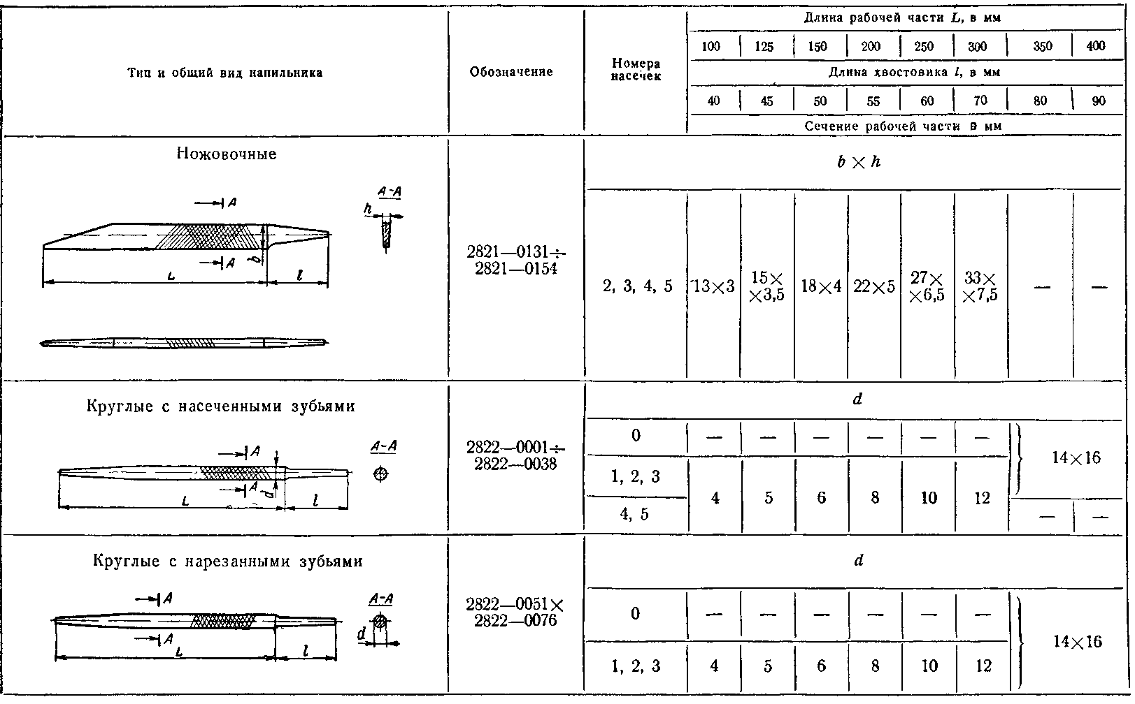 — Тип насечек; — Форму рабочего тела; — Длину; — Особенности рукояти или хвостовика.