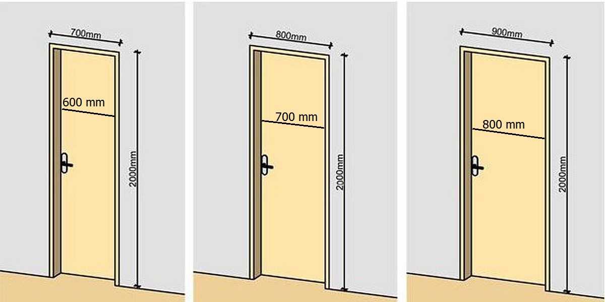 Размеры дверного полотна, коробки и рекомендуемые размеры проема для стандартных межкомнатных дверей