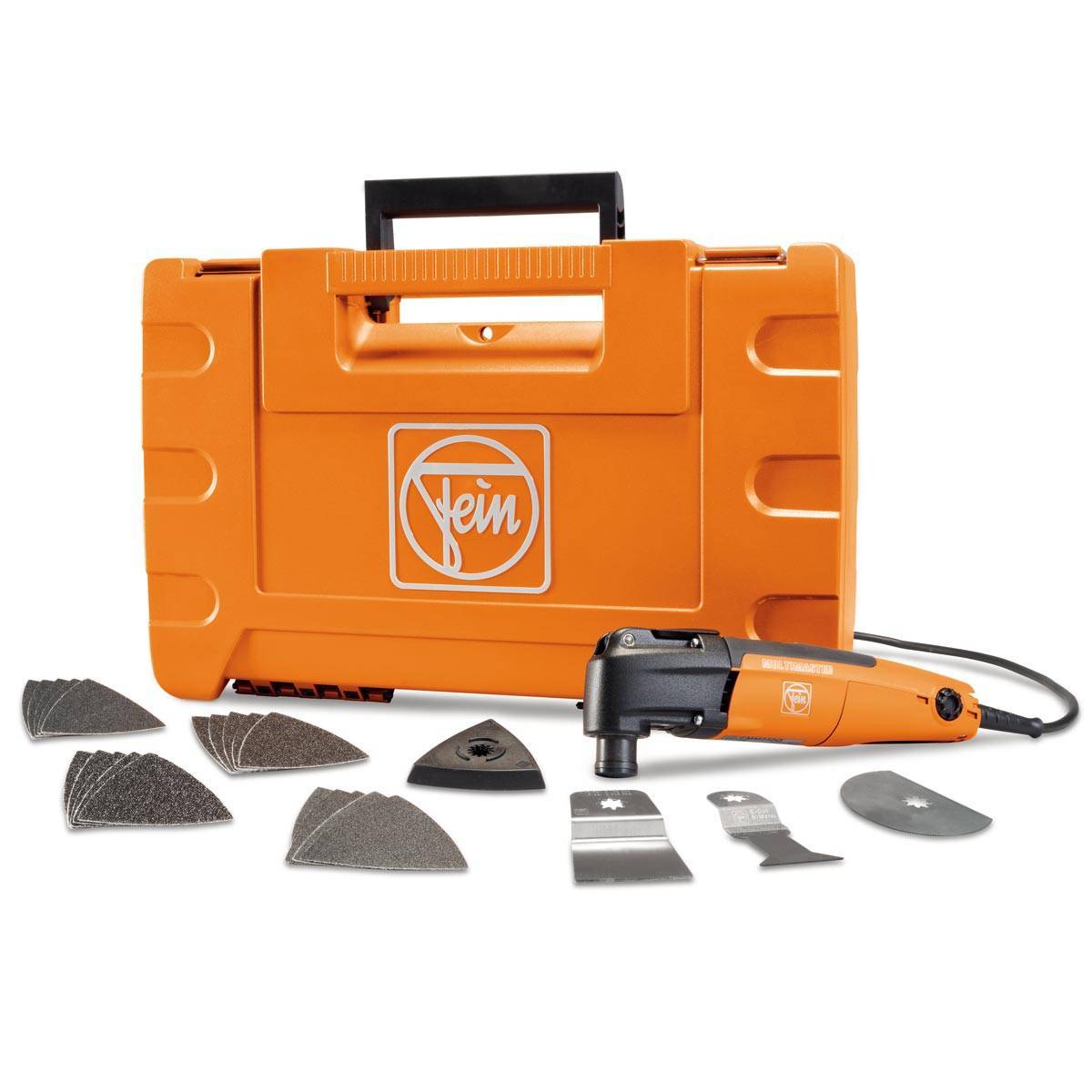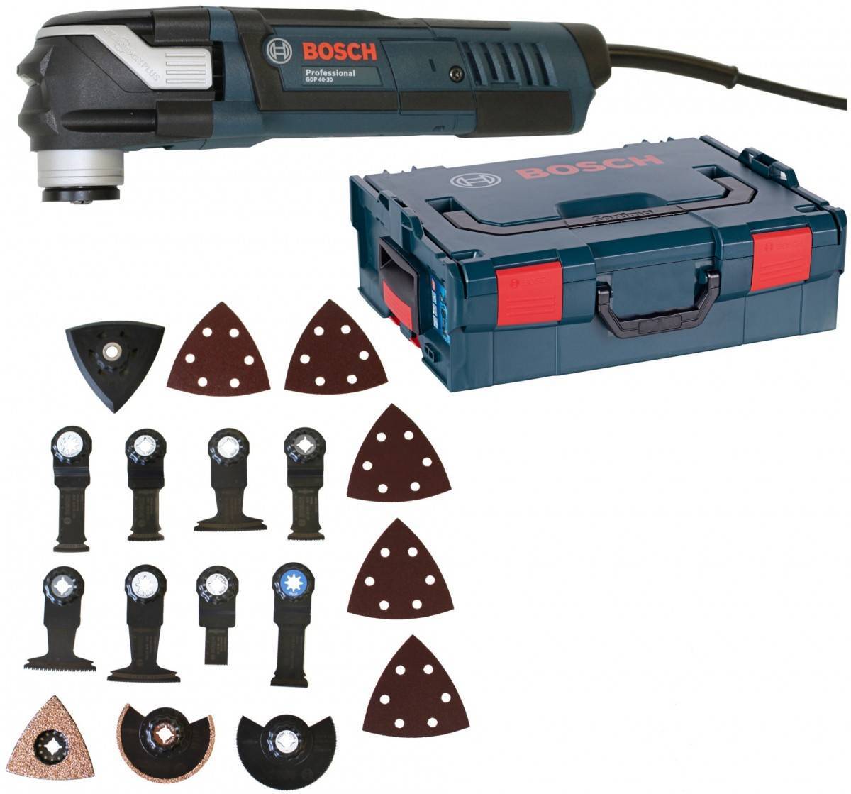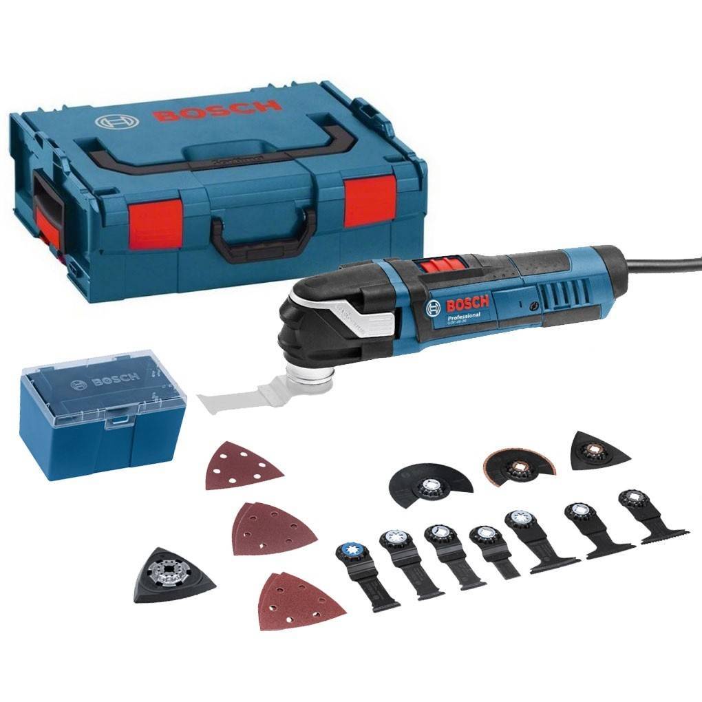 | Комплектация | 2 сегментированных (пильное и зачистное) полотна. 3 погружных полотна. Шабер. Дельтовидная подошва для «Велкро» шлифшкурок. Комплект шкурок. 4-х ступенчатый ограничитель глубины пропила (8-14 мм). Крепежный винт с шайбой. Шестигранный ключ. Пластиковый чемодан. |