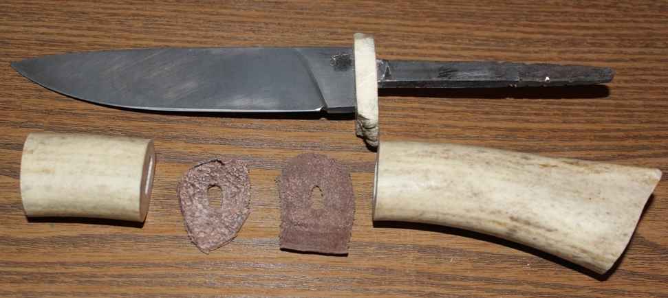 Изготовление такой рукояти не очень сложное, потребуются две накладки из любого материала. Которые, в последствии буду заклепаны на хвостовике. Но следует учесть, что выбор формы рукояти ограничен и накладная рукоять имеет большую теплопроводность.