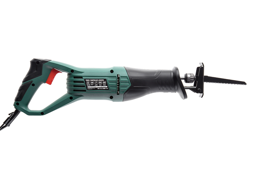 Между тем сабельная пила — инструмент очень удобный для домашнего использования. Принцип устройства достаточно прост — полотно пилы движется с небольшой амплитудой, обычно до 28 мм, с помощью маломощного мотора. Конструкция достаточно удобна (это зависит, конечно, от конкретной модели). При первом взгляде новичка вспоминается банальная дрель: рукоятка пистолетного типа, кнопка включения, вытянутый корпус с держателем. Даже держат пилу обычно также — двумя руками. Впрочем, легкие модели можно удерживать и одной рукой, что дает преимущество при работе в труднодоступных местах.