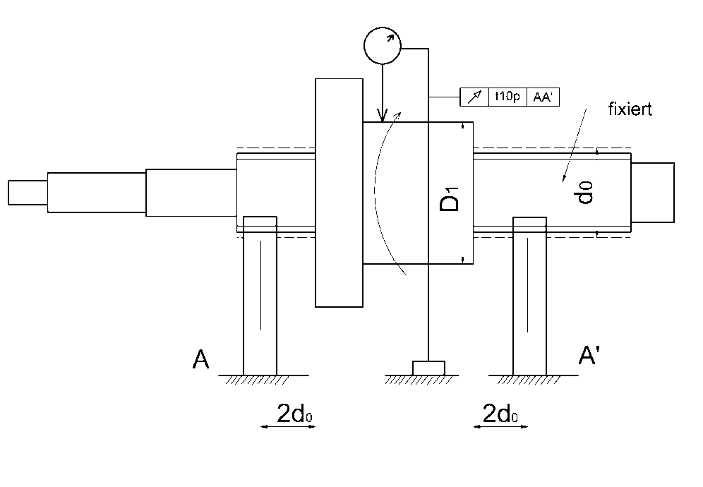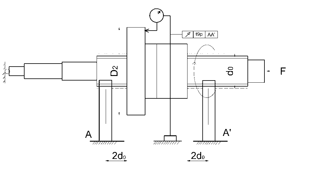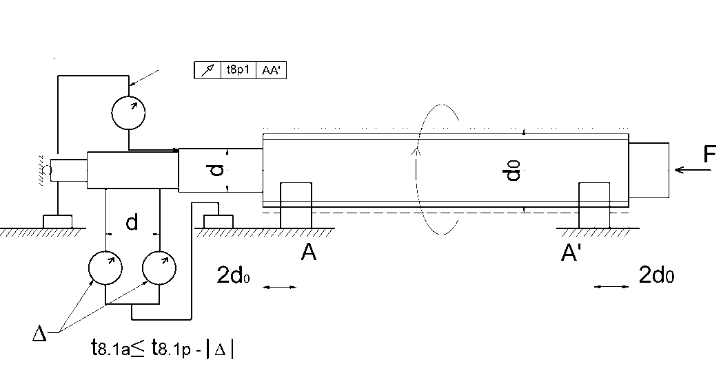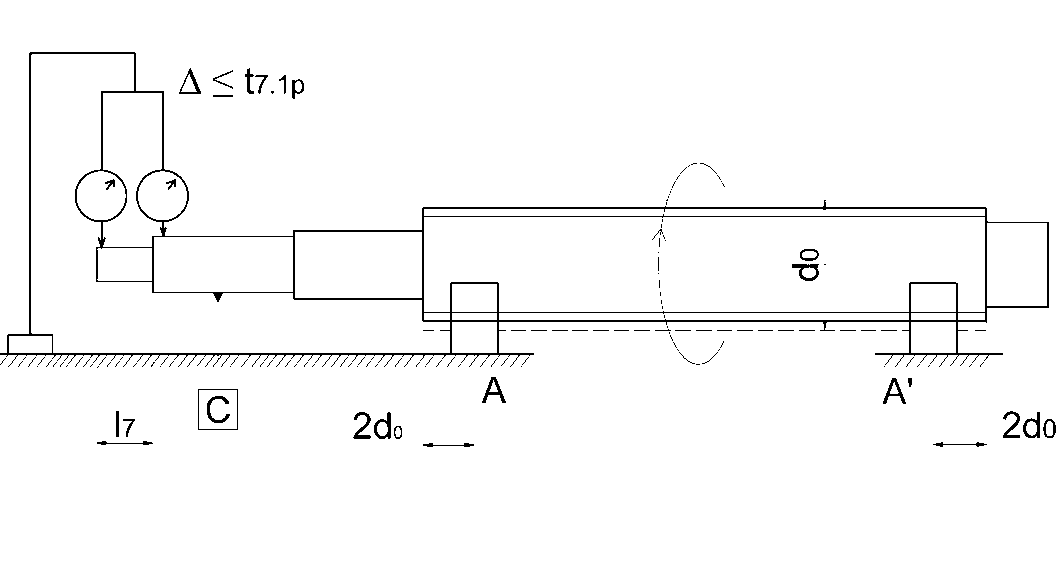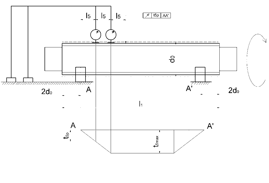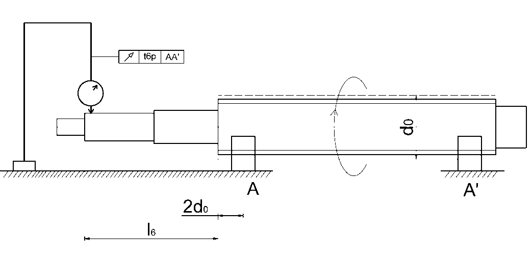 Измерение радиального биения t5 наружного диаметра вала на отрезке l5 для определения прямолинейности по отношению к АА’