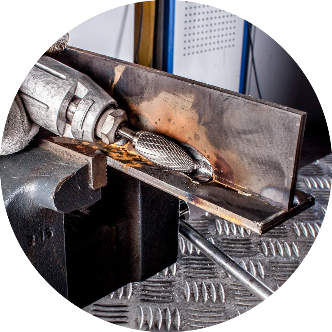 Этот тип приспособлений также прекрасно подходит для обработки сварочных швов.