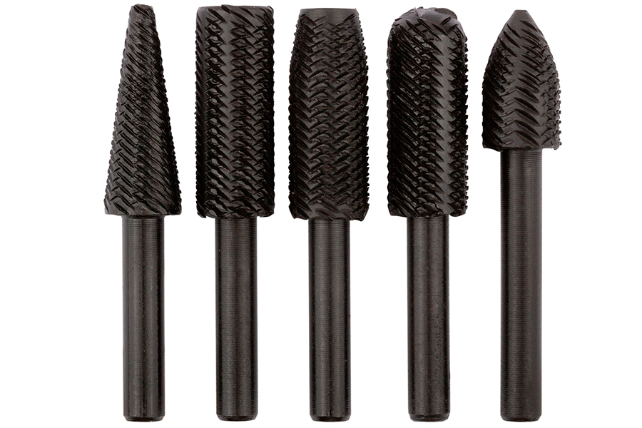 Применяются насадки, сделанные из углеродистой стали для обработки углублений, которые имеют сложную геометрическую форму. Кроме того, металлическими шарошками можно удалить, и зачистить острые края на металлических деталях, а также создать ровные и аккуратные отверстия. Часто случается так, что просверленное отверстие не удовлетворяет технологическим задачам, поэтому для рассверливания и увеличения диаметра отверстия, надо воспользоваться борфрезой.
