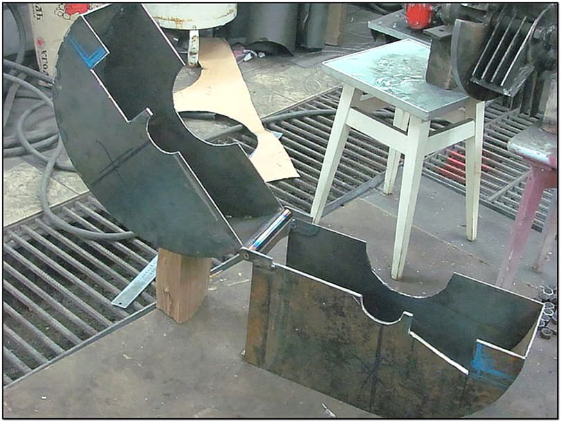 - Вырезать входы под рабочий вал, раструбы на подаче сырья и выпуске щепы для арболита.