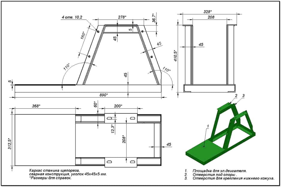 Если решились сделать щепорез для арболита своими руками, приступаем к изучению чертежей и разбираемся с материалами и инструментами. Независимо от конструкции агрегата, он состоит из следующих основных элементов: