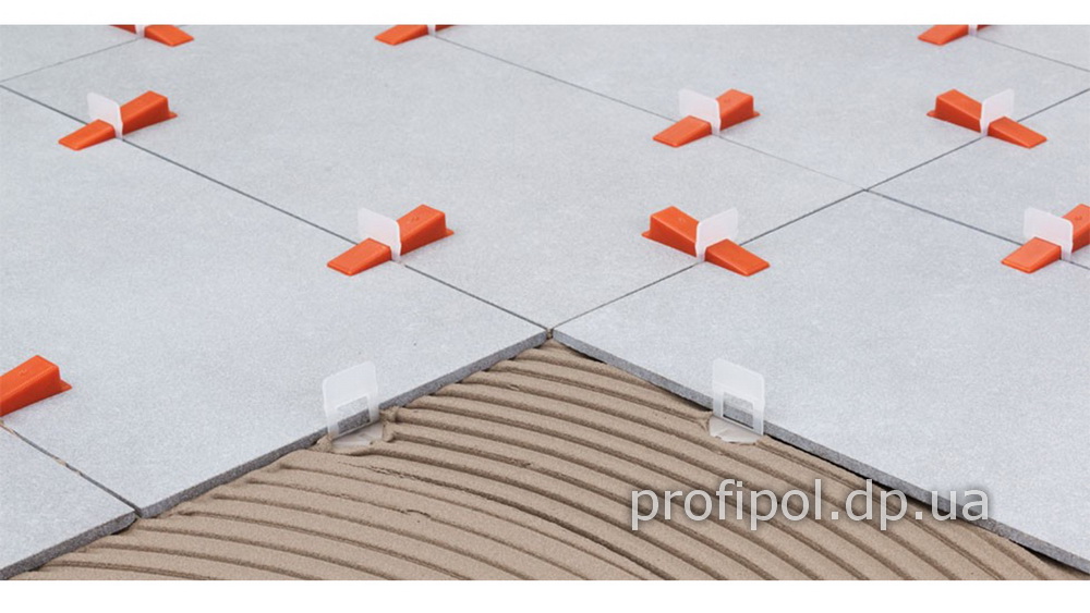 - Есть возможность работать как с напольной, так и настенной плиткой. Это универсальная система, которая подойдет для кафеля толщиной от 3 до 20 мм.