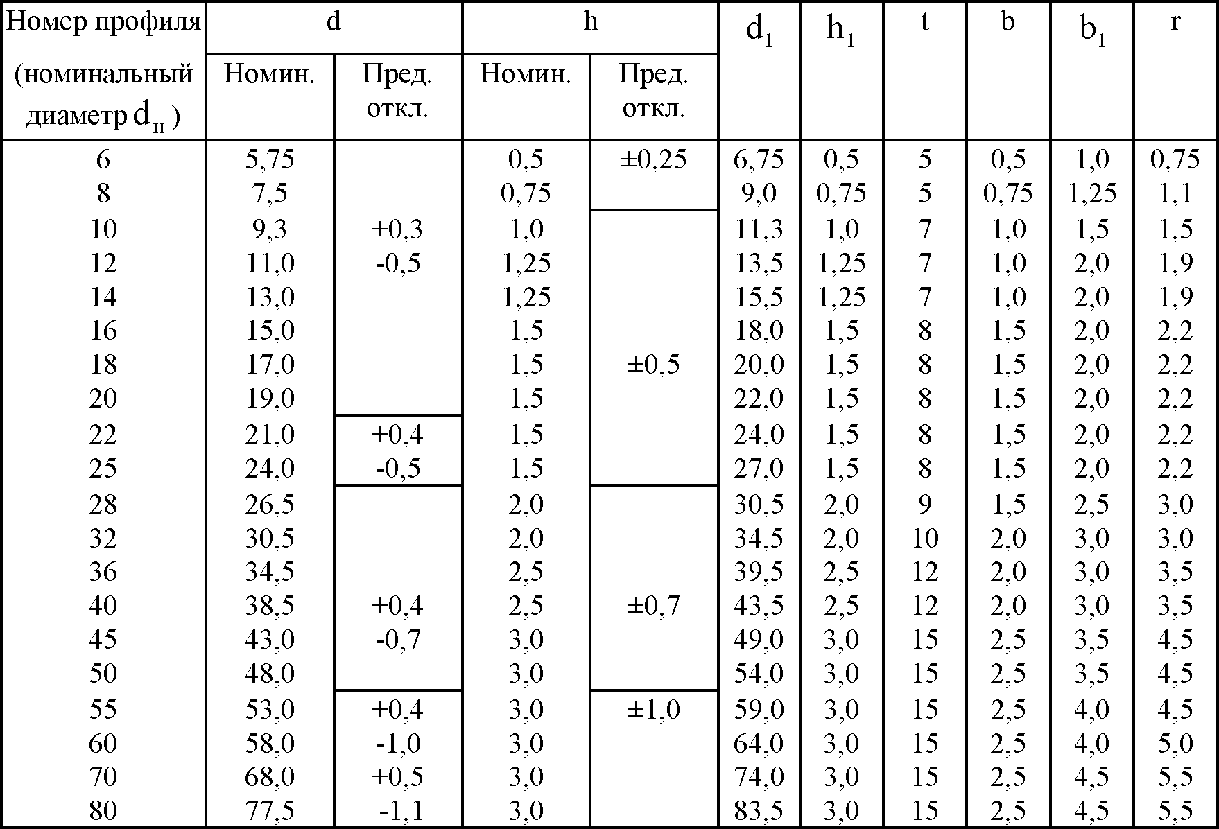 Примечание. По требованию потребителя предельные отклонения размера d1 не должны превышать предельных отклонений d плюс удвоенные предельные отклонения h.