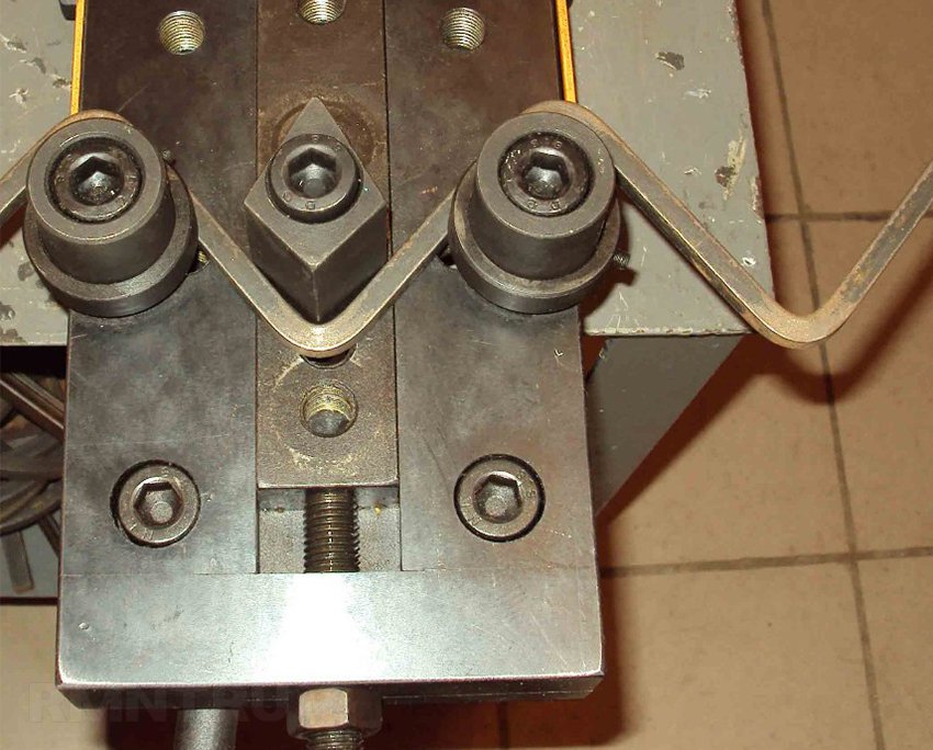 Основа устройства — шаблон в виде дуги и закаленные ролики, позволяющие двигаться ручному приводу. В зависимости от типа инструмента, он может работать с квадратным прокатом со сторонами 14×14 миллиметров, неширокой полосой до 25 мм, а также прутком.