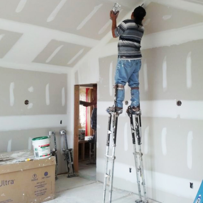 Используя строительные ходули можно перемещаться вдоль всего помещения на требуемой высоте. Именно это обстоятельство и позволяет производить многие строительные операции без применения трудоемких приспособлений. Такие работы как оштукатуривание и ошпаклевание потолка , установка ПВХ панелей, монтаж натяжных потолков и т.п. могут быть произведены с использованием строительных ходуль.