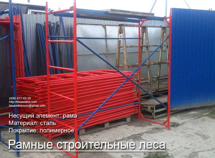 Рамные строительные леса отличаются быстротой сборки, низкой ценой и относительно малым весом. К недостаткам относится недостаточная жесткость конструкции при использовании. Для обеспечения необходимой жесткости для рам стали использовать круглую трубу, плавающие переходные патрубки заменены жестко вваренными, диагонали максимально приближены к торцам рам.