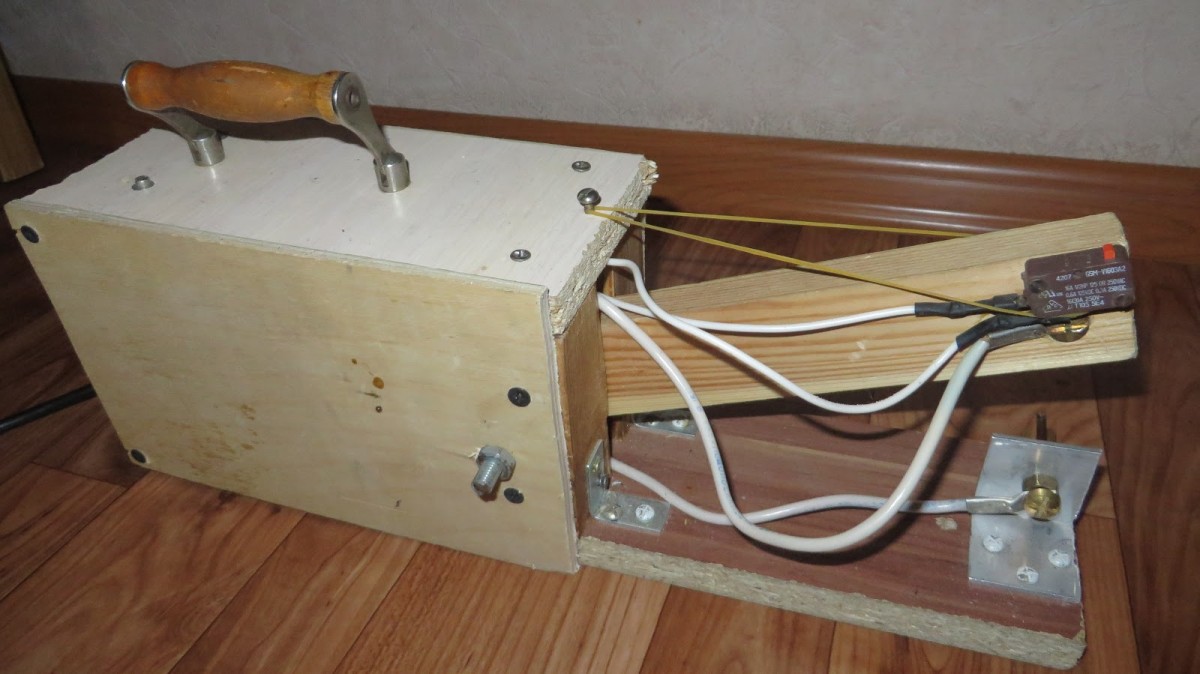 От ненужной микроволновки потребуется отсоединить сетевой кабель и концевой выключатель. Также потребуется металлическая дверная ручка.