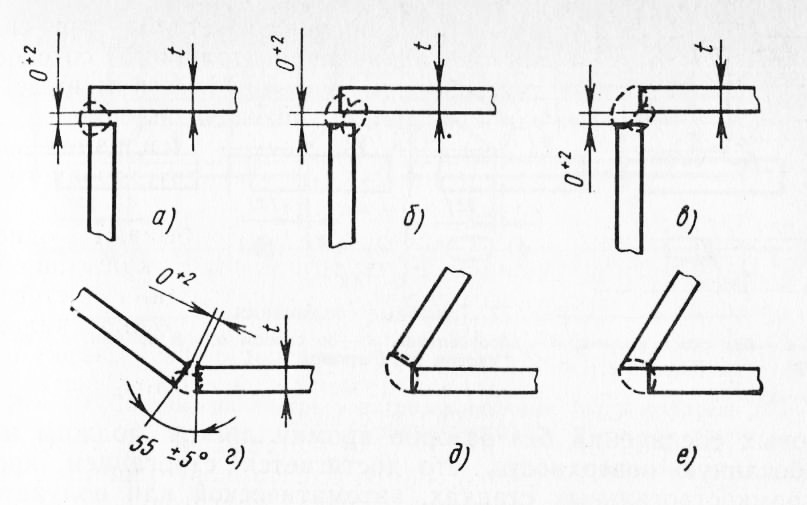 К данным соединениям относятся скрепления элементов, выполненные под некоторым углом друг к другу. Для них характерно использование предварительных скосов для обеспечения наилучшего провара шва. Это позволит увеличить глубину сварочного соединения, что повысит надежность конструкции. Для усиления прочности используется двустороннее сваривание металлических изделий, при этом не допускаются зазоры в соединяемых кромках. Эти типы электросварных швов характеризуются повышенным использованием объема наплавленного металла.