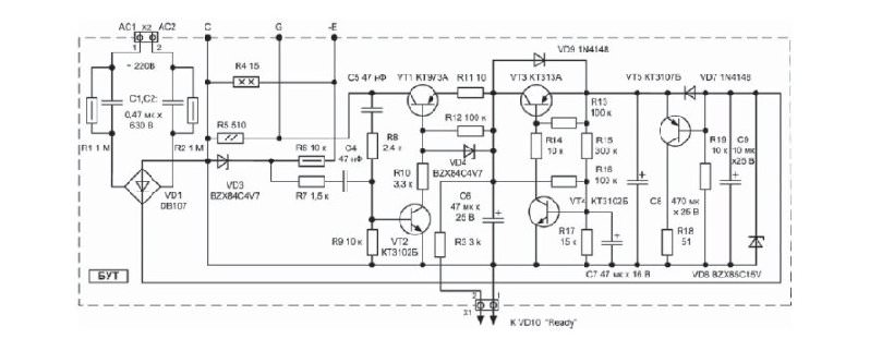 На рисунке 2 изображена схема блока управления процессами, проходящими в силовой части. У рассматриваемого типа аппарата схемы втиснуты на одну плату. Изменим это и блок управления сделаем на отдельной плате.