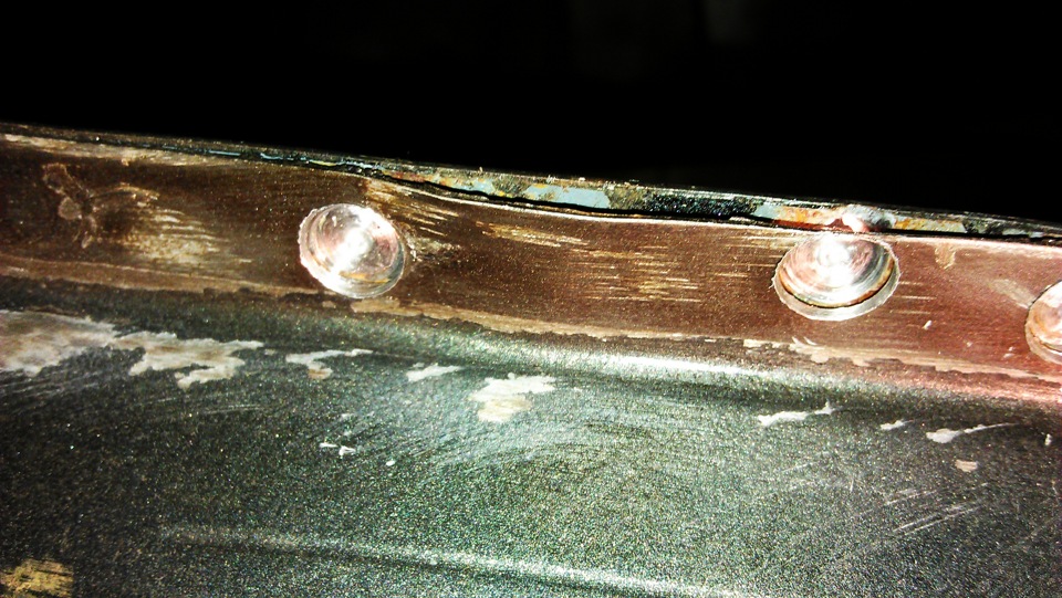 В местах, где ремонтная деталь подкладывается под метал, к примеру, порог задвигается под среднюю стойку и под крылья спереди и сзади, вот там нужно аккуратно высверлить места точечной сварки.