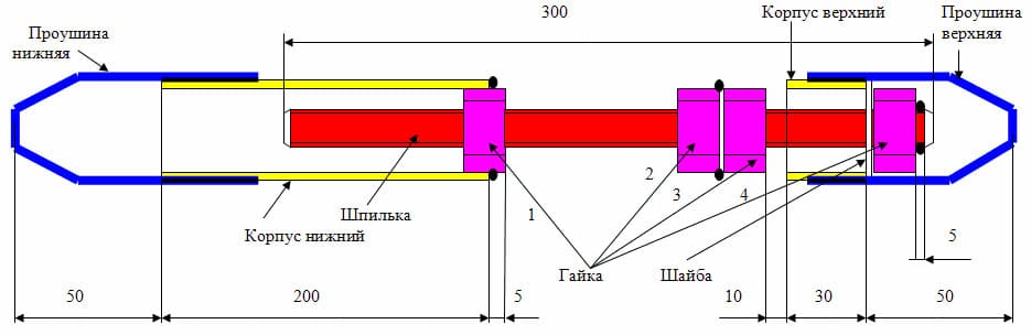 - Пары крюков или иных грузозахватных элементов (стропов), имеющих резьбу на противоположной части.