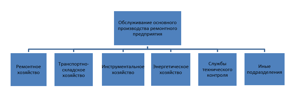 - Вспомогательные – включающие инструментальный, гальванический и др. хозяйства.
