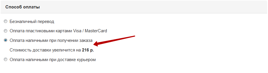Данный способ оплаты доступен физическим лицам при выборе получения своего заказа до пункта выдачи со страховкой иликурьером до двери со страховкой. Данный способ оплаты доступен при выборе доставки вашего заказа слежующими курьерскими компаниями 1. СДЭК 2. Boxberry 3. PickPoint . При оформление заказа наложенным платежом к общей сумме заказа прибавляется дополнительный процент за данную услугу. Дополнительную сумму которую вам необходимо нужно доплатить вы сразу увидите, если при оформление заказа выберите во вкладке способ оплаты вариант оплата наличными при получении заказа. К сумме заказа автоматически прибавляется дополнительная сумма смотрите пример ниже. Пример оформления